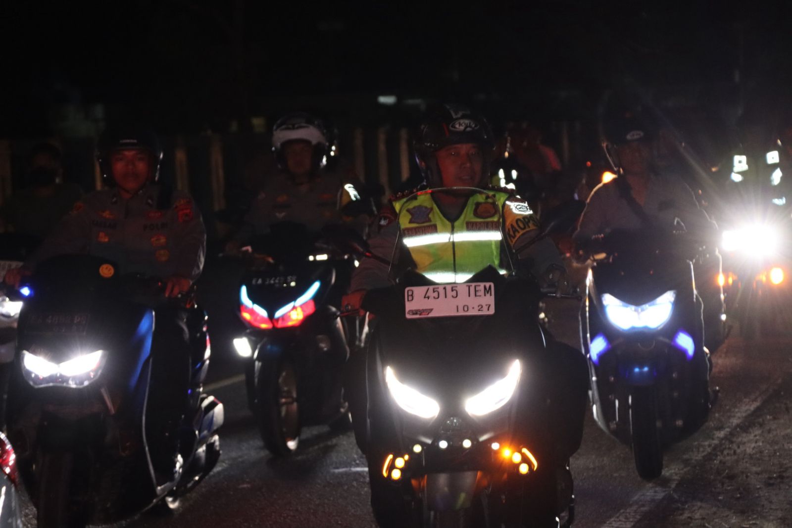 Dengan mengendarai sepeda motor AKBP Eko Sutomo SIK., MIK., didampingi oleh PJU Lingkup Polres Bima serta personel Polres Bima melakukan patroli pengamanan malam takbiran.