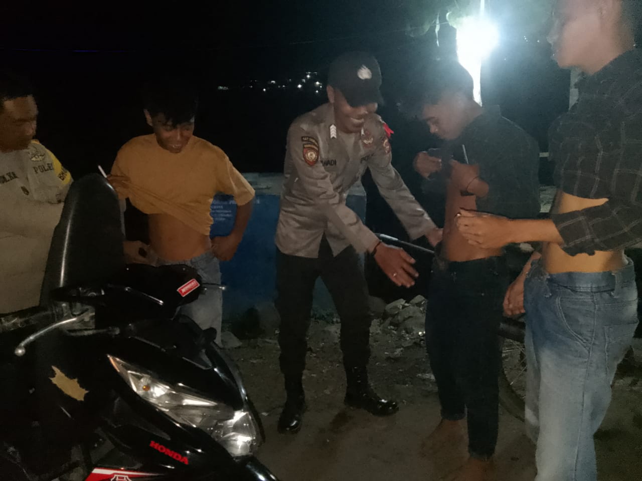 Dalam kegiatan tersebut selain memberikan himbauan Kamtibmas tim patroli juga melakukan penggeledahan badan terhadap para pemuda yang nongkrong hingga larut malam.