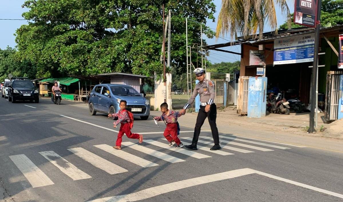 Sat lantas Polres Bima aktif dalam memastikan kelancaran arus kendaraan di sejumlah titik rawan serta membantu siswa sekolah menyebrang jalan.