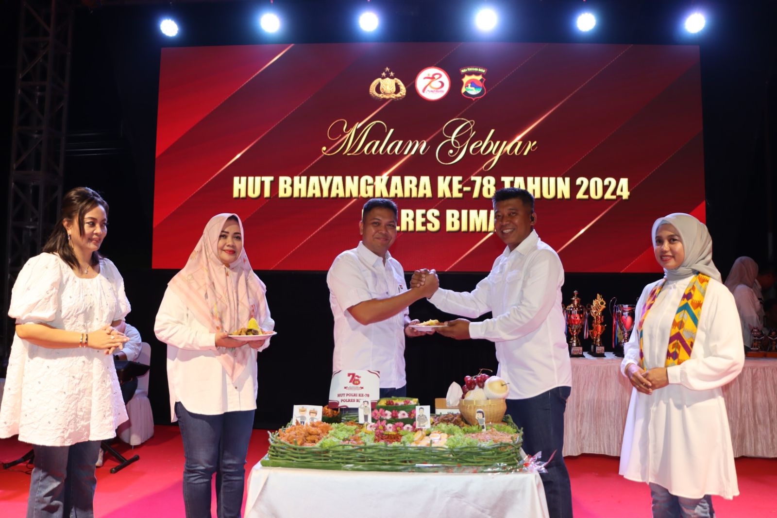 Malam gebyar Bhayangkara dalam rangka menyambut HUT Bhayangkara Ke-78 ini diawali dengan pertunjukan tari tradisional kabupaten Bima.