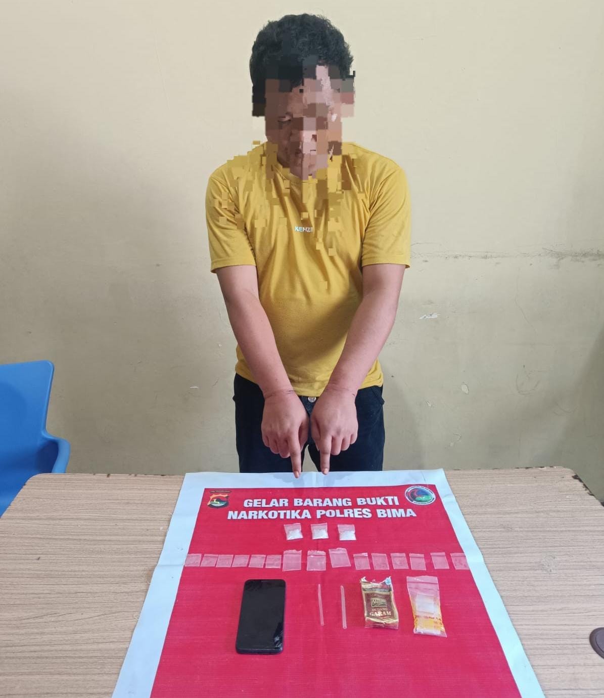 “Iya, personil Sat Resnarkoba Polres Bima berhasil mengamankan 1 orang warga yang diduga menguasai, memiliki, menjual, atau mengedarkan Narkotika Jenis Shabu.” Ungkap Kapolres Bima, mengutip Kasat Narkoba.