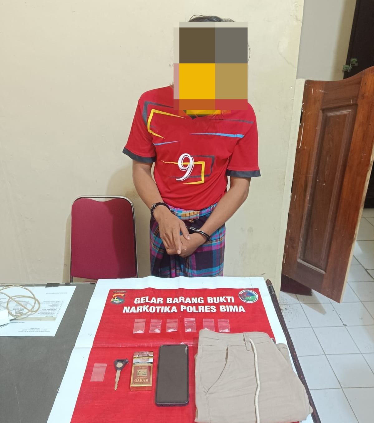 Terduga pengedar narkoba yang berinisial MW (L/21) Warga Desa Timu Kecamatan Bolo Kabupaten Bima pada Senin (22/01/24) sekira pukul 17.00. WITA Sore Kemarin.