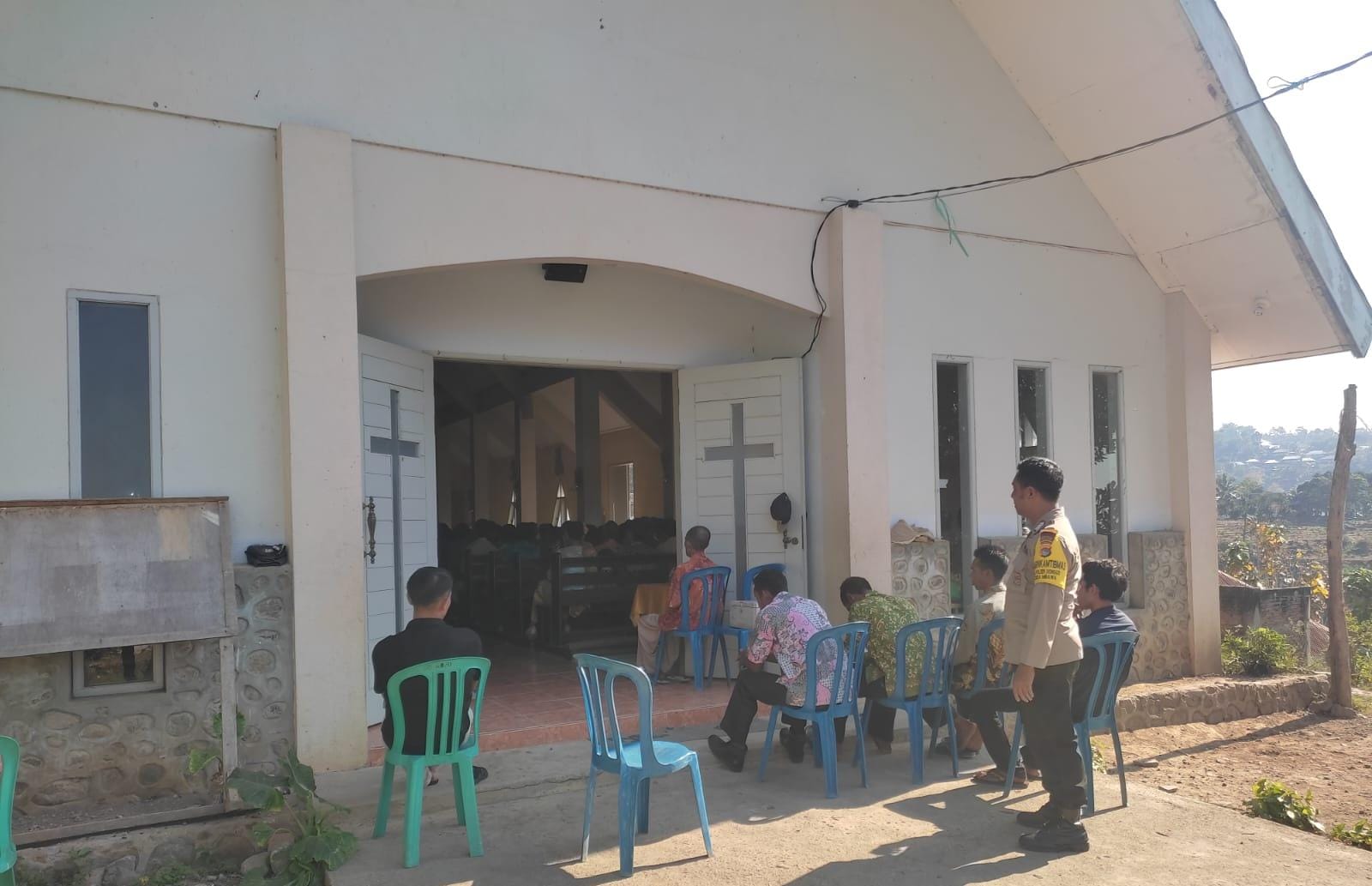 Bripka Abdul Karim menghimbau kepada masyarakat dan jemaat gereja agar menjaga Kamtibmas yang kondusif di lingkungan sekitar. menciptakan suasana Pilkada yang aman, damai,dan sejuk.