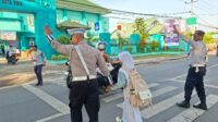 Satlantas Polres Bima Kota Laksanakan Rawan Pagi, Bantu Anak Sekolah dan Pejalan Kaki Menyeberang Jalan