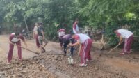 Pasca Banjir, Polsek Soromandi Gotong Royong Bersama Masyarakat Bersihkan Badan Jalan