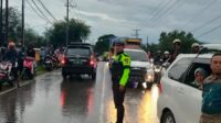 Gerak Cepat Satlantas Polres Bima, Urai Kemacetan di Ruas Jalan Yang Menggenangi Ruas Jalan Pasca Banjir