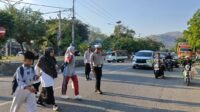 Sat Samapta Polres Bima Kota Laksanakan Gatur Lalin Pagi di Titik Rawan Macet dan Layani Anak Sekolah Menyeberang Jalan