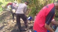 Wujud Polri Peduli, Bhabinkamtibmas Desa Nipa Gotong Royong Bersihkan Saluran Irigasi Bersama Warga
