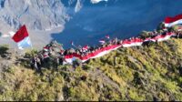 Sambut HUT Kemerdekaan RI ke -79 Kapolres Bima Pimpin Pendakian dan Kibarkan Bendera Merah Putih di Puncak Gunung Tambora