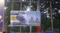 Mencegah Kecelakaan, Sat Lantas Polres Bima Pasang Spanduk Himbauan Tertib Berlalulintas
