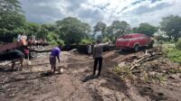 Jembatan Hanyut, Bhabinkamtibmas Polsek Tambora Gotong Royong Membuat Jalan Alternatif Bersama Warga