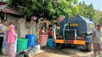 Bhabinkamtibmas dan Sat Samapta Polres Bima Salurkan Bantuan Air Bersih Bagi Warga Terdampak Kemarau di Desa Kalampa.