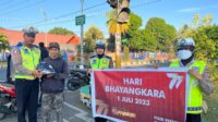 77 Tahun Hut Bhayangkara, Sat Lantas Polres Bima Kota Bagi Gratis Helm Standar