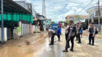 Sat Samapta Polres Bima Kota Bantu Bersihkan Jalan Pascabencana Banjir di Kelurahan Paruga