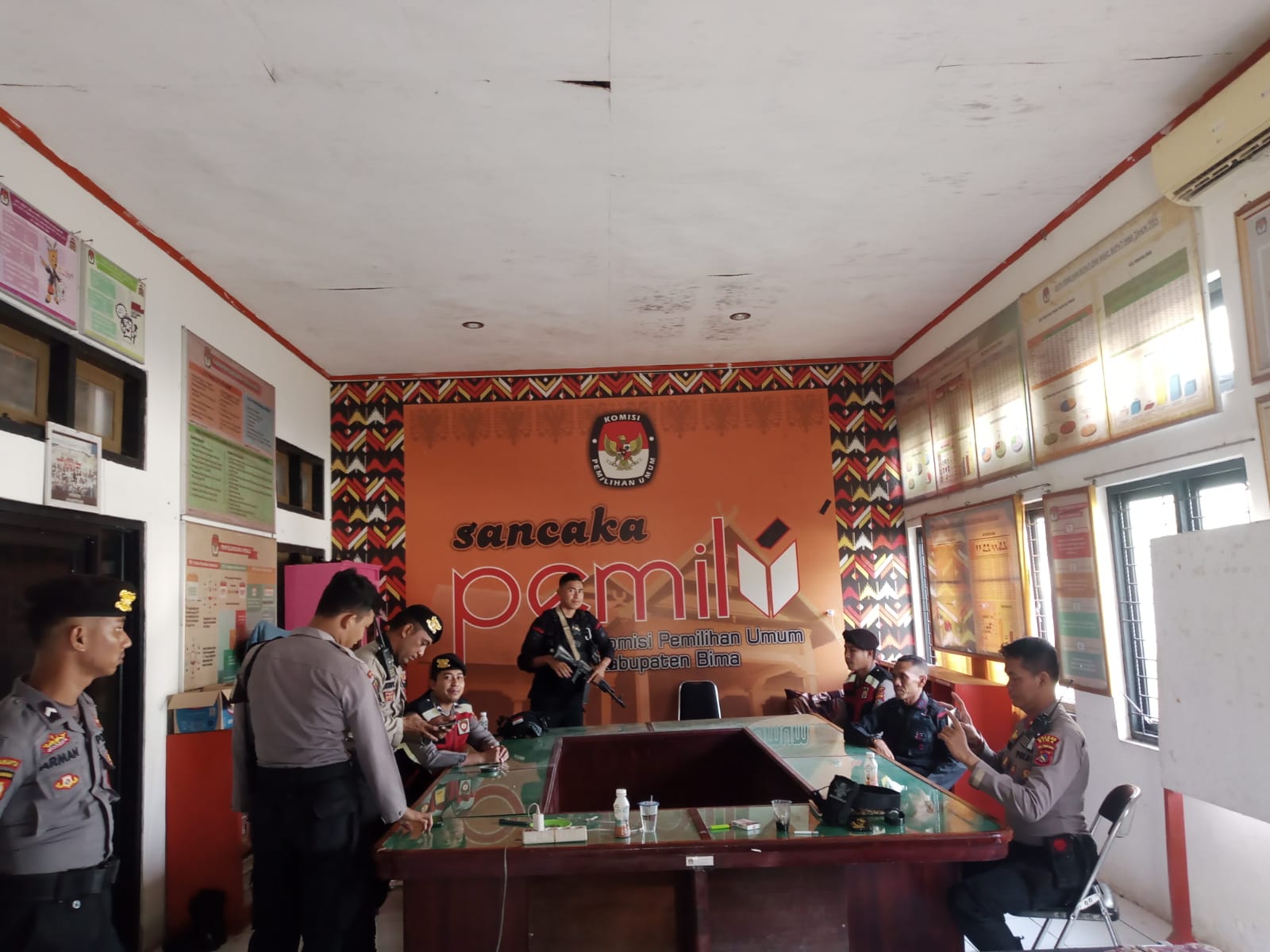Kedatangan Personel/tim patroli Samapta Polres Bima ke KPU dan Bawaslu disambut hangat oleh petugas.