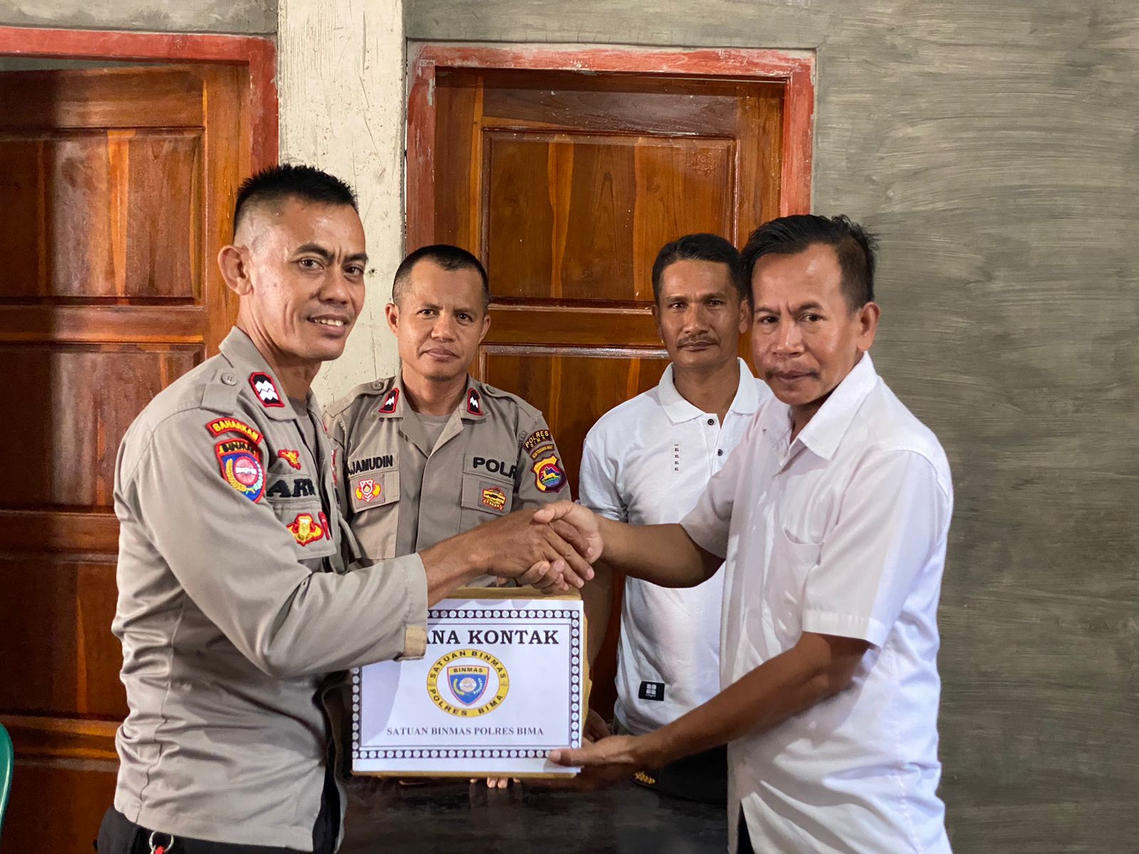 Dalam kegiatan itu juga empat personel Sat Binmas yang dikendalikan oleh Kasatnya Iptu Sumardin menyerah sarana kontak kepada masyarakat yang hadir.