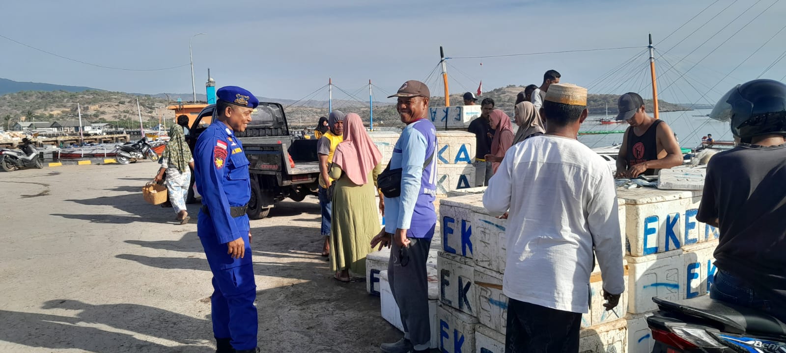 Kota Bima,NTB (13/1) – Dalam upaya menjaga keselamatan dan keamanan di Pelabuhan Sape, anggota Satuan Polisi Perairan (Sat Polair) Polres Bima Kota melaksanakan patroli rutin. Kegiatan ini bertujuan untuk memberikan himbauan kepada masyarakat nelayan dan buruh pelabuhan yang sedang melakukan kegiatan bongkar muat di area pelabuhan.