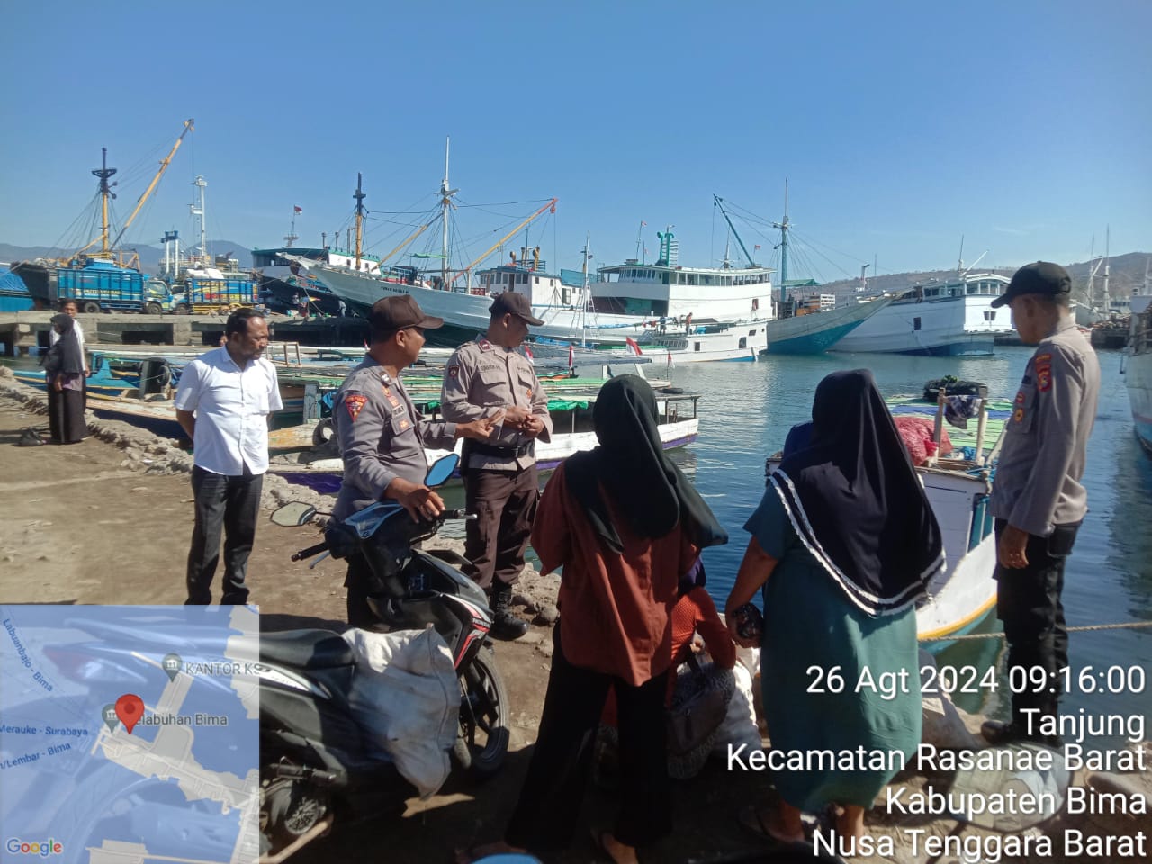 Kota Bima, NTB (26 Agustus 2024) – Dalam upaya menjaga keamanan dan ketertiban di wilayah Pelabuhan Laut Bima, personel Polsek Kawasan Pelabuhan Laut Bima melaksanakan patroli rutin pada hari Senin, 26 Agustus 2024, pukul 08.50 Wita. Patroli ini dilakukan untuk memberikan rasa aman kepada para buruh, anak buah kapal (ABK), serta masyarakat yang berada di area pelabuhan.
