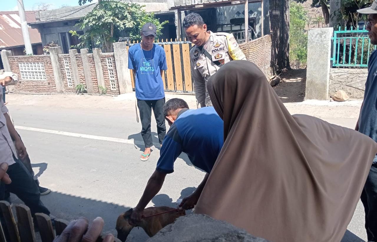 Bima, NTB (13/9) – Guna mencegah meluasnya penyakit rabies akibat gigitan anjing Bhabinkamtibmas Polsek Donggo Polres Bima Polda NTB melakukan pendampingan tim Puskeswan Kecamatan Donggo Kabupaten Bima.