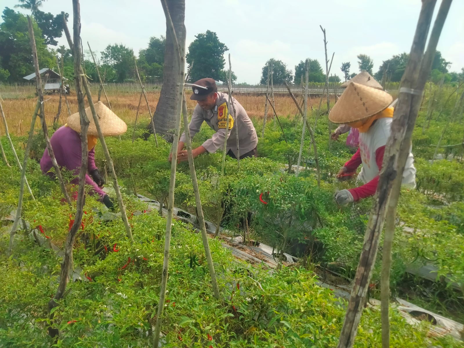 Seperti yang tampak jelas dilakukan oleh bhabinkamtibmas Polsek Woha Polres Bima Polda NTB Bripka I Wayan Parwata membantu warga binaan di desa yang memanen Cabai pada Jum,at (7/3/25) Siang kemarin.