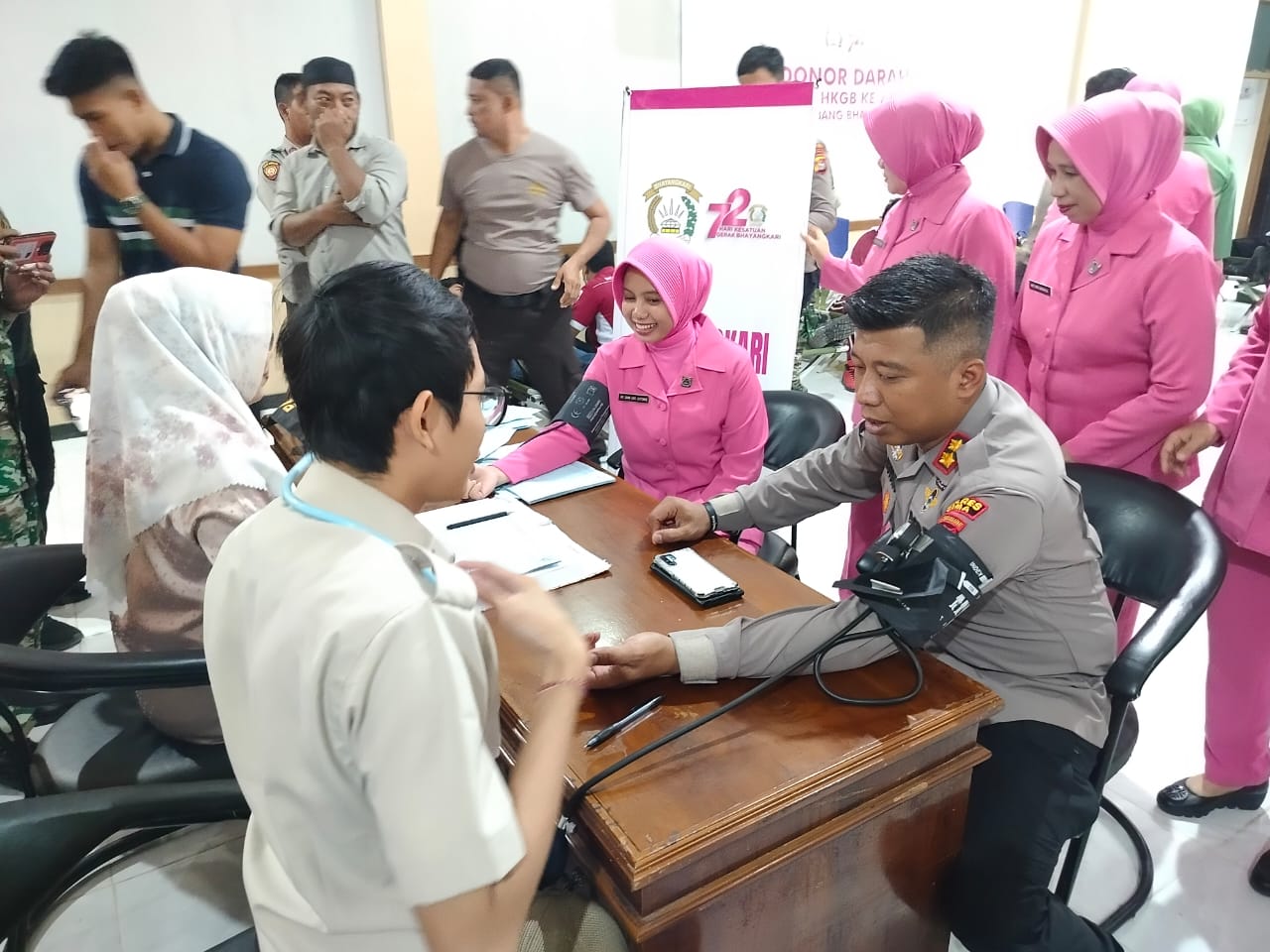 Bima, NTB (29/6) – Kepolisian Resor Bima Polda NTB menggelar kegiatan bakti kesehatan donor darah,dalam rangka menyambut HUT Bhayangkara Ke-78 tahun 2024.
