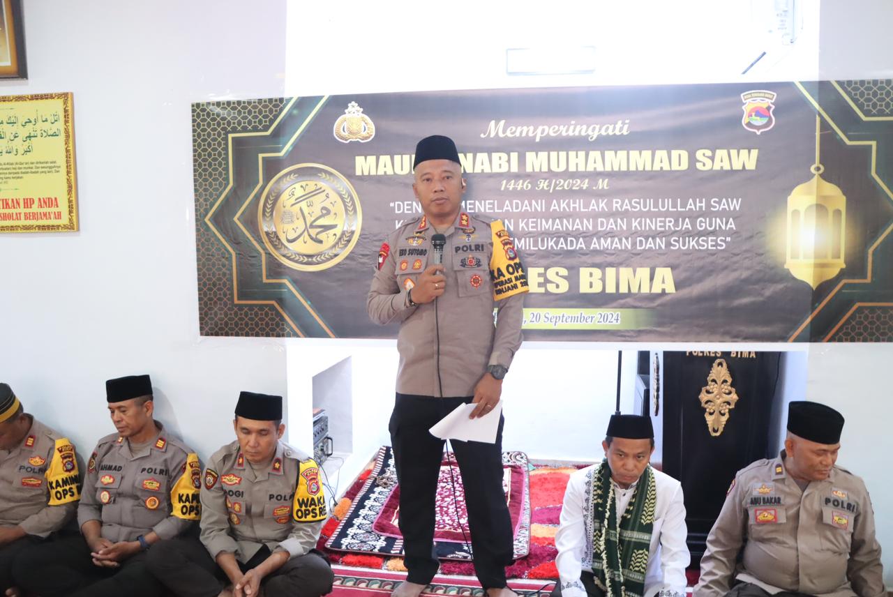 Kapolres Bima AKBP Eko Sutomo S.I.K.,M.I.K., menyampaikan Peringatan Maulid 1446 H/2024 M, merupakan momen di mana ummat islam dapat menggali kembali hikmah dan pelajaran di balik kisah kelahiran Baginda Nabi Besar Muhammad SAW.