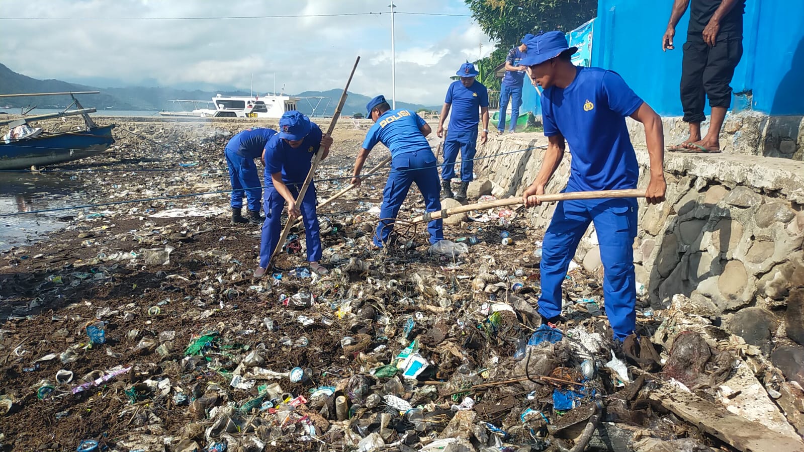 Seperti yang dilakukan oleh Satuan Polairud Polres Bima Polda NTB dan masyarakat pesisir membersihkan panti di Desa Bajo Kecamatan Soromandi Kabupaten Bima.