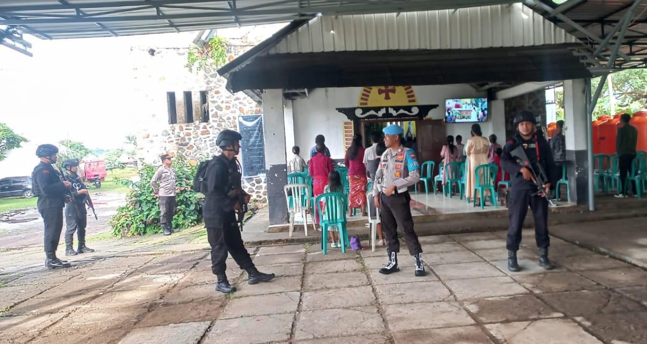 Bima, NTB (28/12) – Personel Operasi Lilin Rinjani 2024 Polres Bima Polda NTB Melaksanakan Pengamanan Perayaan Natal Hari kedua.