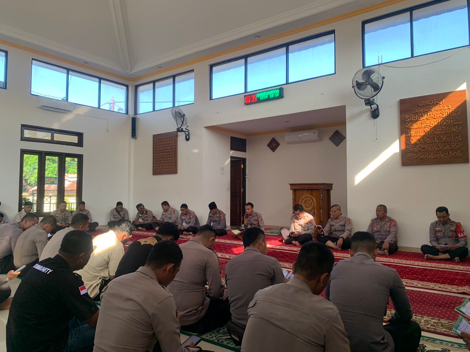 Setelah personel Polri dan ASN memasuki Masjid, kegiatan dilanjutkan dengan pembacaan surat Yasin secara bersama-sama. Acara ini juga dirangkaikan dengan doa yang dipandu oleh Bripda Ridho Ramadhani.