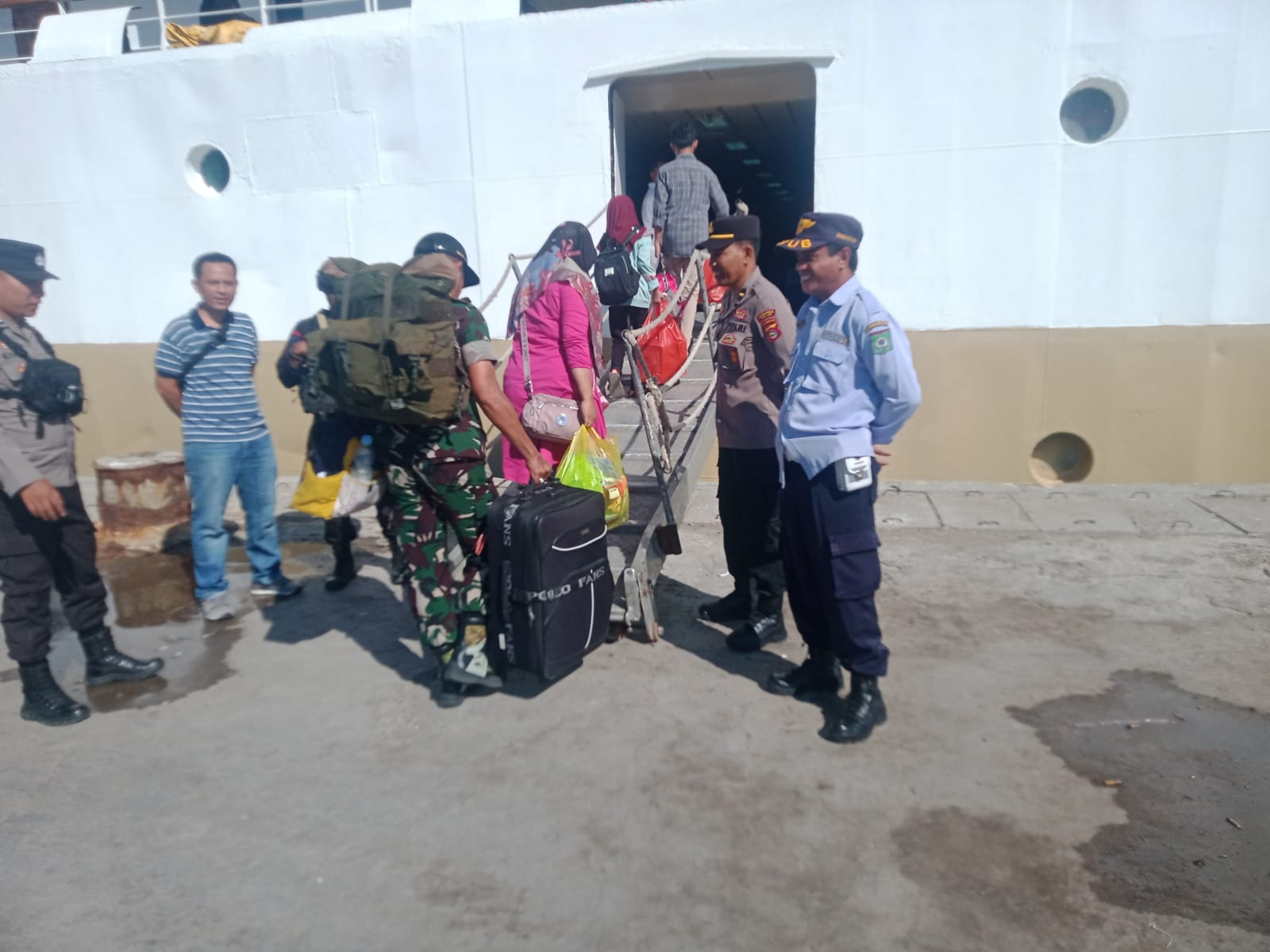 Kota Bima, NTB (12 April 2024) – Personel Pos Pam Pengamanan Terpadu Pelabuhan Bima menjalankan tugas pemantauan dan pengamanan terhadap kedatangan Kapal KM. Wilis dari Pelabuhan Makassar pada Jumat pagi, tanggal 12 April 2024, sekitar pukul 05.30 Wita.