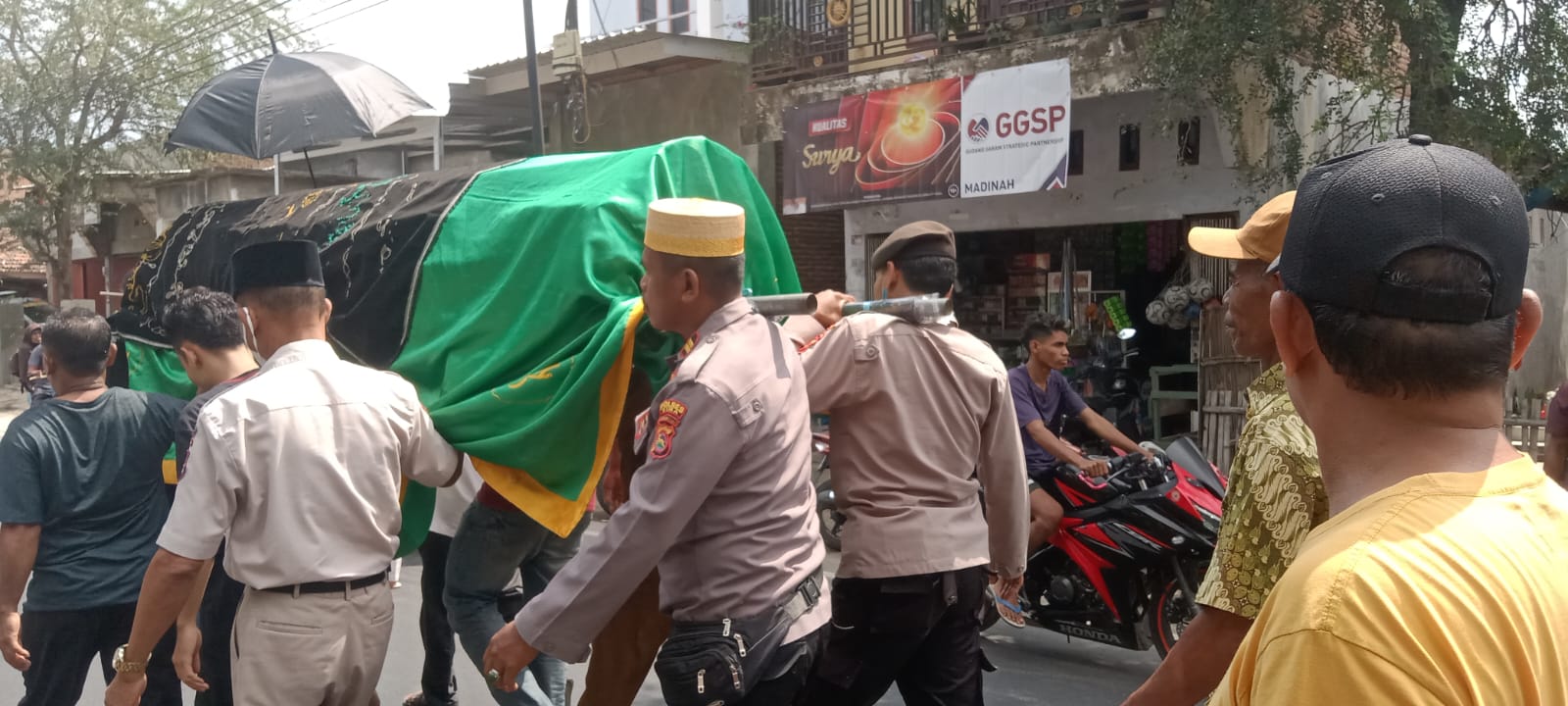 Para pejabat utama dan Kapolsek Jajaran yang hadir ikut membantu prosesi pemakaman serta menandu jenazah Almarhumah hingga ke tempat peristirahatan terakhirnya di TPU Desa setempat.