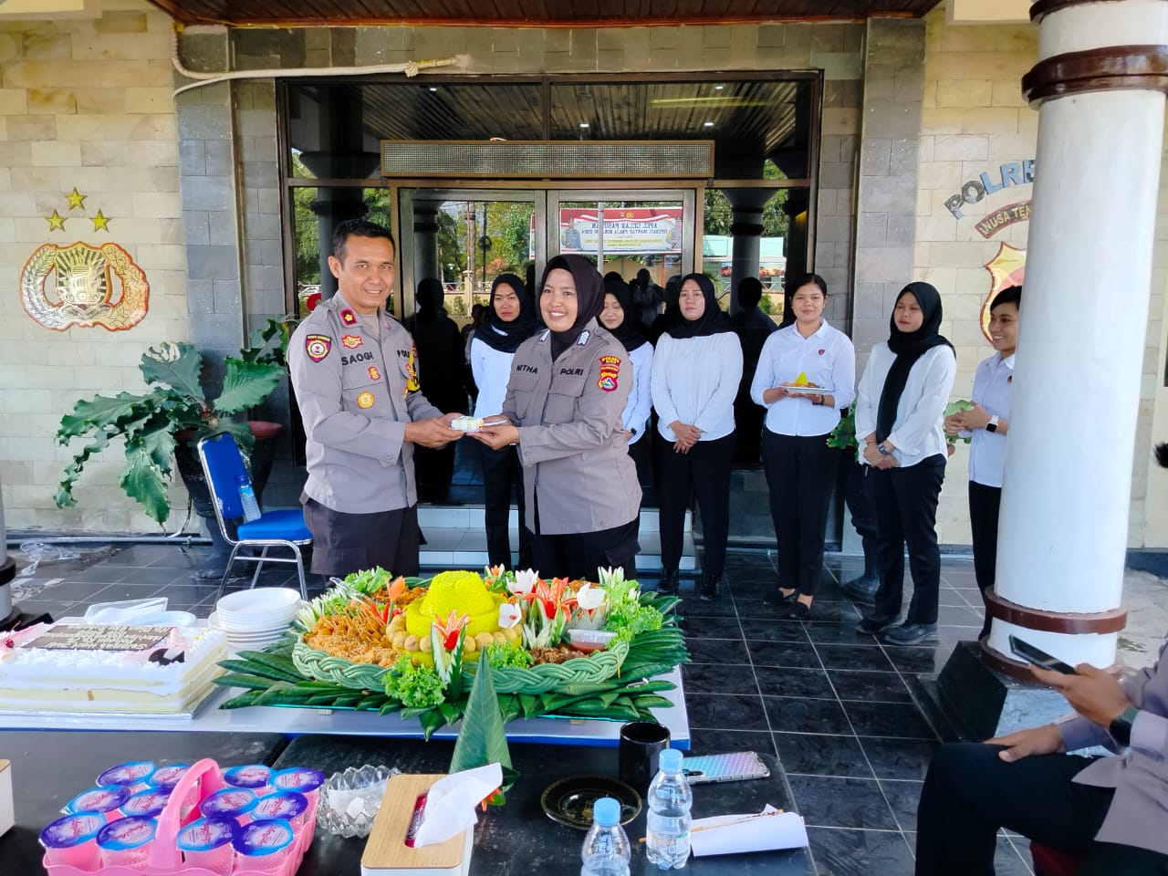 Acara syukuran HUT ke-75 Polwan dipimpin oleh Kapolres Bima AKBP Eko Sutomo S.I.K.,M.I.K., dan dihadiri oleh Wakapolres Kompol Saogi Sujana Angsar dan Pejabat Lingkup Polres Bima.
