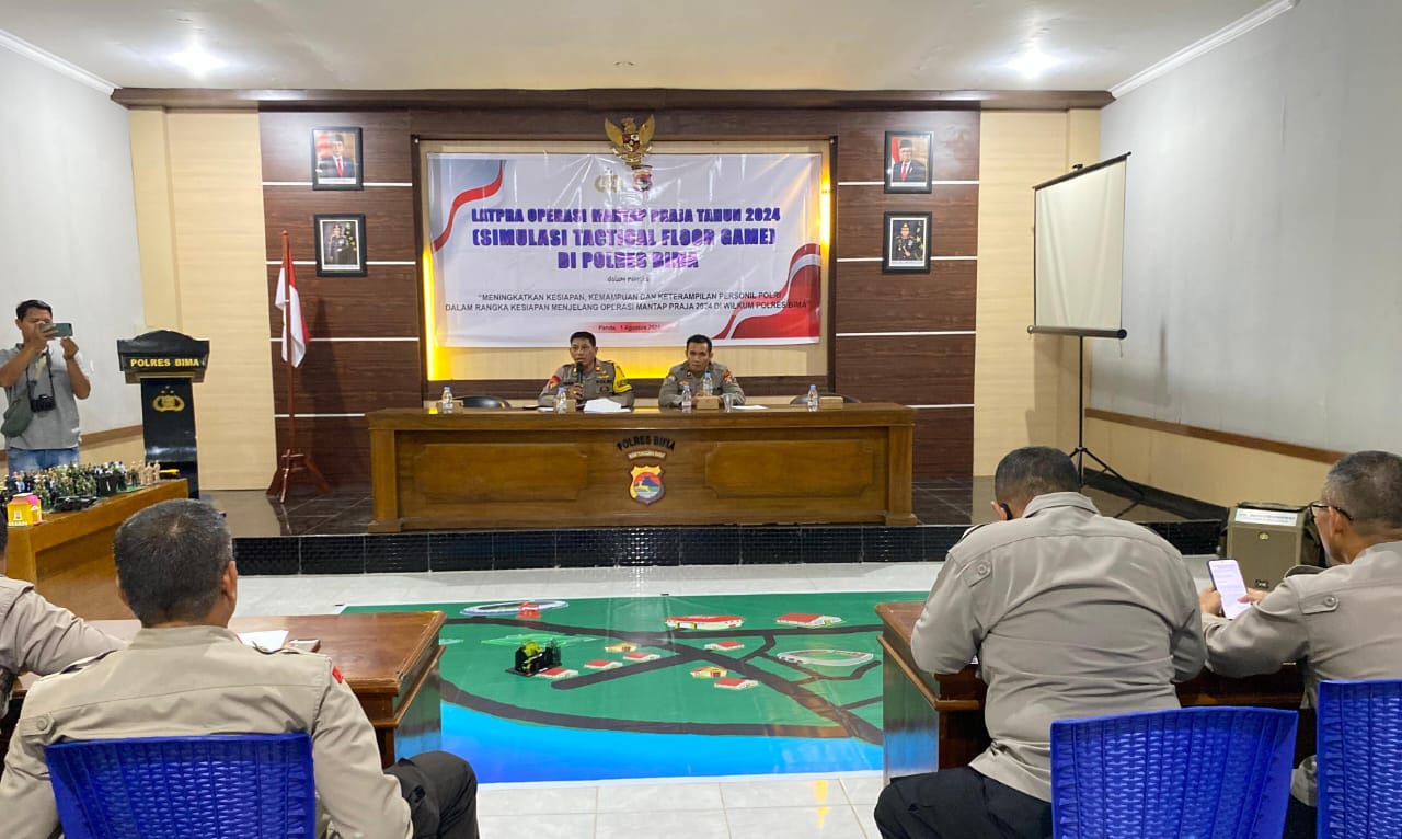 Bima, NTB (02/8) – Kepolisian Resor Bima Polda NTB mengadakan Tactical Floor Game (TFG) sebagai bagian dari persiapan untuk Operasi Mantap Praja dalam rangka Pilkada serentak 2024.