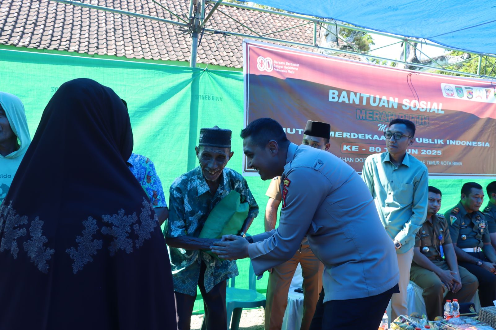 Kota Bima, NTB (5 Agustus 2025) – Dalam rangka menyambut Hari Ulang Tahun (HUT) Kemerdekaan Republik Indonesia ke-80 tahun 2025, Polres Bima Kota bekerja sama dengan Barisan Muda Wirausaha Indonesia (BMWI) menggelar kegiatan Bantuan Sosial (Bansos) Merah Putih pada Senin, 4 Agustus 2025, pukul 10.10 Wita, di Lingkungan Dodu I, Kelurahan Dodu, Kecamatan Rasanae Timur, Kota Bima.