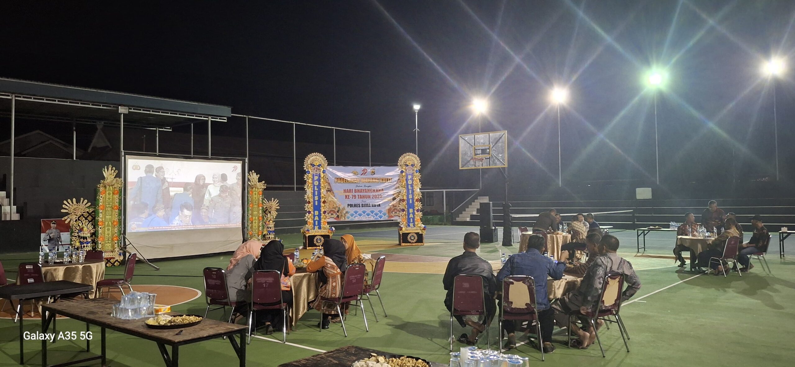 Kota Bima, NTB (5 Juli 2025) – Dalam rangka memperingati Hari Ulang Tahun (HUT) Bhayangkara ke-79, Polres Bima Kota menggelar kegiatan Nonton Bareng (Nobar) Pagelaran Wayang Kulit pada Jumat malam, 4 Juli 2025, pukul 20.30 WITA, bertempat di Lapangan Basket Polres Bima Kota.