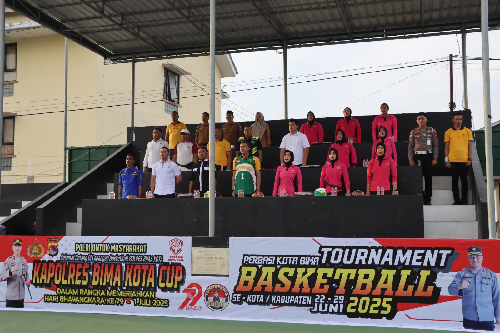 Kota Bima, NTB (24 Juni 2025) – Dalam rangka memperingati Hari Ulang Tahun (HUT) Bhayangkara ke-79, Polres Bima Kota menggelar turnamen bergengsi “Kapolres Bima Kota Cup Basketball 2025”. Turnamen ini secara resmi dibuka pada Senin sore, 23 Juni 2025 pukul 16.00 WITA di Lapangan Basket Polres Bima Kota.
