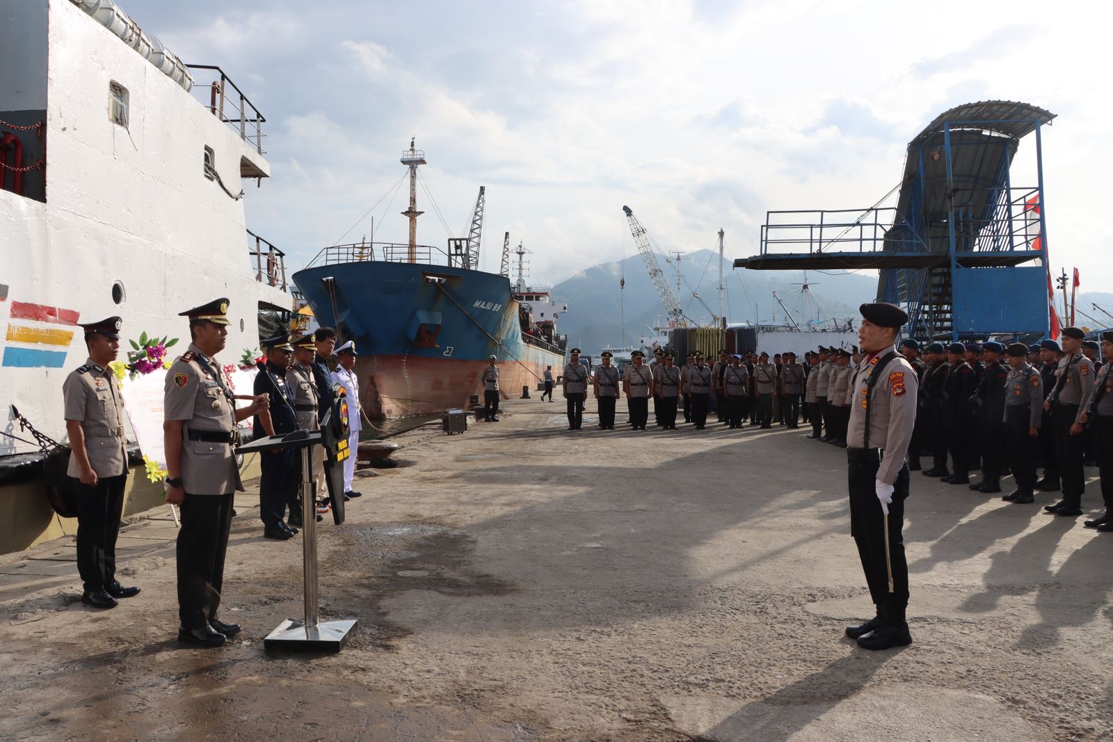 Kota Bima, NTB (27 Juni 2025) – Dalam rangka memperingati Hari Bhayangkara ke-79, Polres Bima Kota menggelar upacara tabur bunga di Dermaga Pelabuhan Laut Bima pada Jumat (27/6/2025) pukul 08.00 WITA. Kegiatan penuh khidmat ini dipimpin langsung oleh Kapolres Bima Kota, AKBP Didik Putra Kuncoro, S.I.K., M.Si., sebagai bentuk penghormatan kepada para pahlawan yang telah gugur dalam tugas.