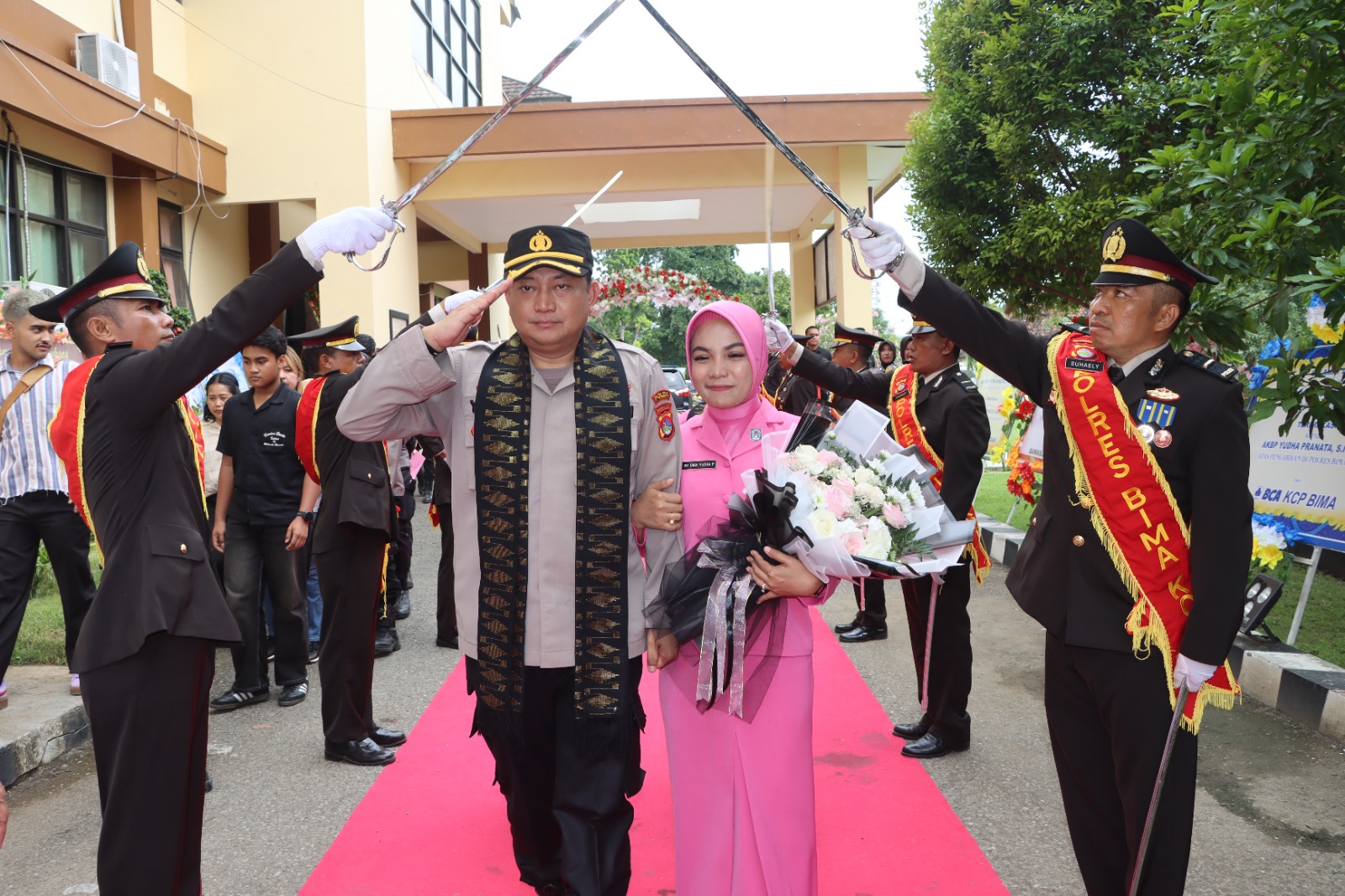 Pelepasan ini dipimpin langsung oleh Kapolres Bima Kota AKBP Didik Putra Kuncoro S.I.K., M.Si., dan dihadiri oleh seluruh Pejabat Utama (PJU) serta personel Polres Bima Kota. Acara dimulai dengan prosesi Pedang Pora, sebuah tradisi kehormatan yang penuh makna simbolis untuk menghormati dedikasi dan pengabdian AKBP Yudha Pranata selama memimpin Polres Bima Kota.