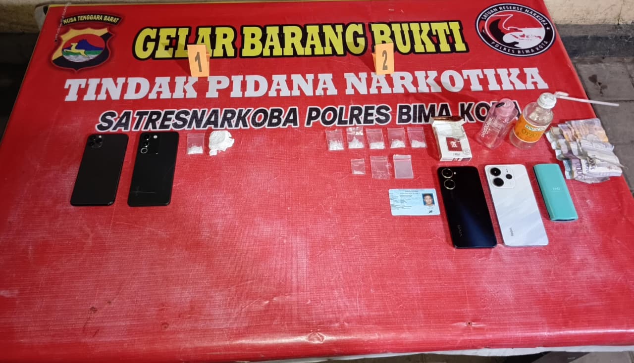 Adapun AD, warga Desa Talapiti, Kecamatan Ambalawi, Kabupaten Bima, ditangkap di kosnya di Kelurahan Penatoi. Dari hasil penggeledahan, polisi menemukan enam bungkus plastik klip berisi sabu, satu plastik klip kosong, satu bungkus rokok, dua alat hisap (bong), satu kaca pirex, tiga unit handphone, serta uang tunai Rp52 ribu.