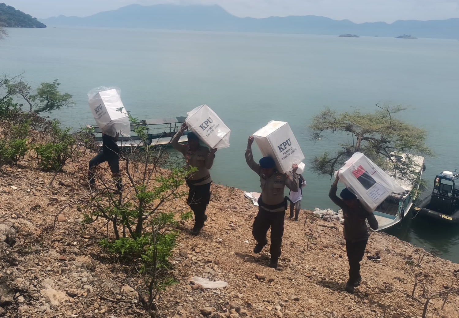 Kota Bima, NTB (13/2) – Polri terus menjalankan perannya sebagai garda terdepan dalam mengawal dan mengamankan proses pendistribusian logistik Pemilihan Umum (Pemilu) di seluruh Indonesia, termasuk di pulau-pulau terluar yang menjadi bagian penting dari negara.