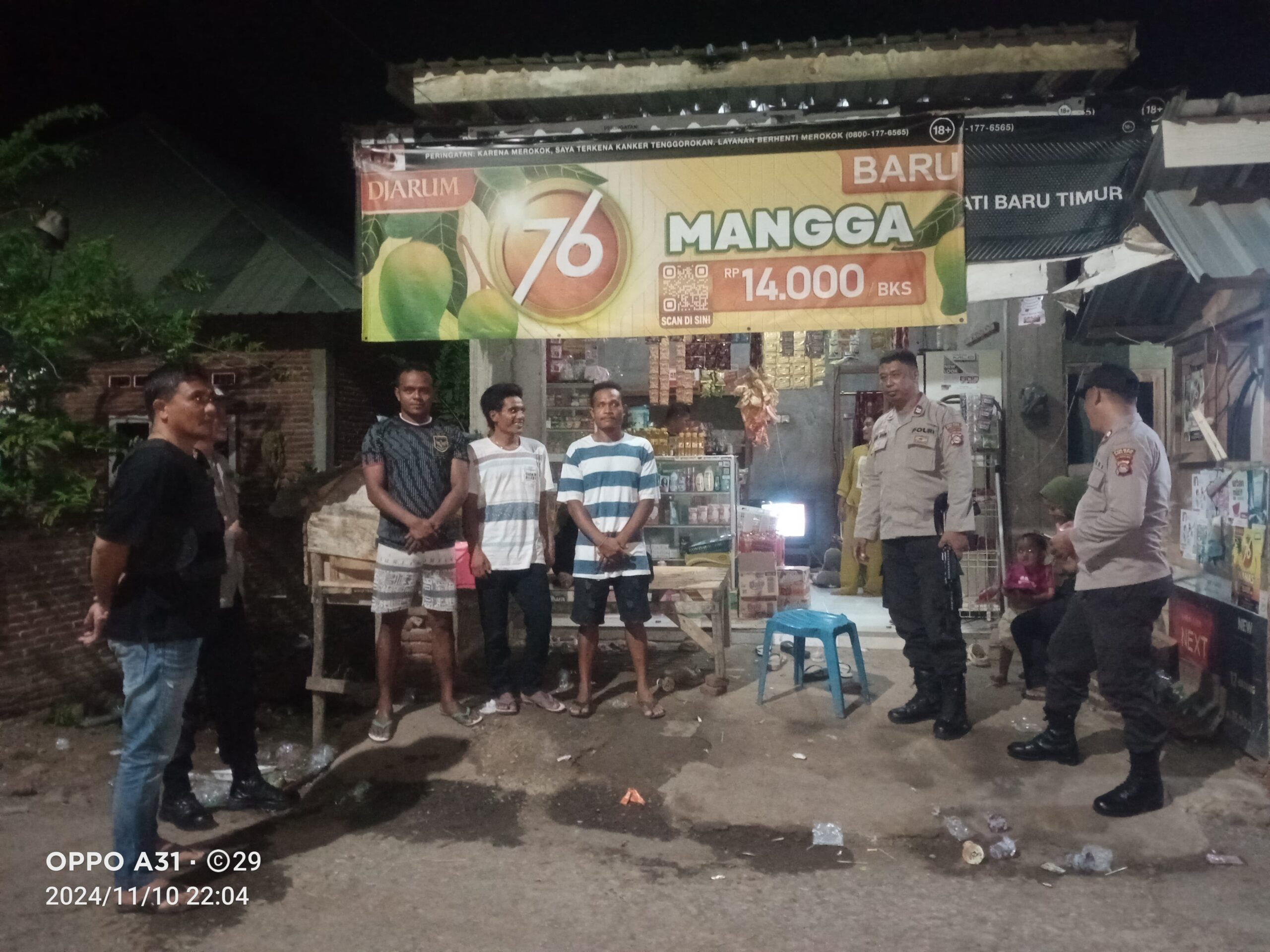 Patroli kemudian dilanjutkan ke Lingkungan Melayu dan Lingkungan Kedo, di mana petugas mengimbau sekelompok pemuda yang sedang nongkrong agar turut menjaga keamanan dan ketertiban. Pesan serupa juga disampaikan di Lingkungan Jatiwangi, Lela Jatibaru Barat, dan Rasabou, Kelurahan Jatibaru Timur. Masyarakat dan pemuda yang ditemui diingatkan untuk tidak melakukan tindakan yang dapat memicu gangguan keamanan di masa menjelang pemilukada.