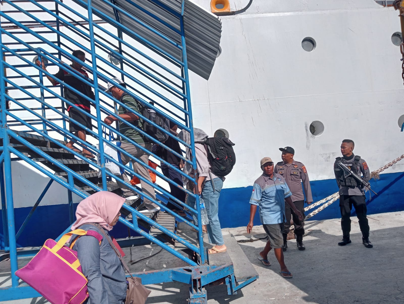 Polsek Kawasan Pelabuhan Laut Bima Amankan Embarkasi dan Debarkasi Kapal KM. BINAIYA di Pelabuhan Bima