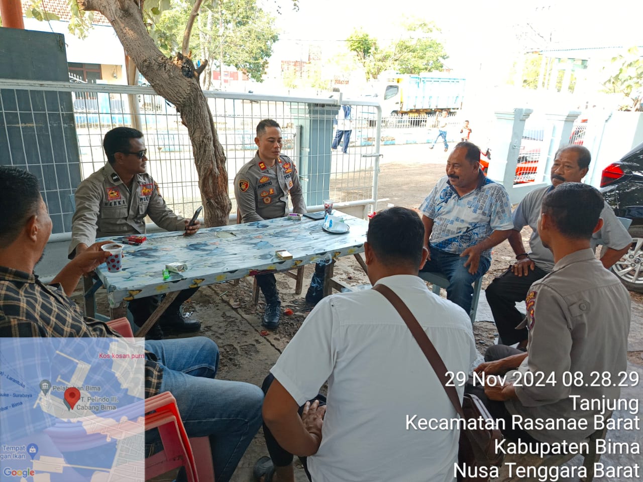 Kota Bima, NTB (29/11/2024) – Polsek Kawasan Pelabuhan Laut Bima melaksanakan kegiatan Jumat Curhat pada pukul 09.00 WITA di areal Pelabuhan Bima, Kelurahan Tanjung, Kecamatan Rasanae Barat, Kota Bima. Kegiatan ini dipimpin langsung oleh Kapolsek Kawasan Pelabuhan Laut Bima, IPTU Kuntho T. Prakoso, S.H., bersama personel Polsek.