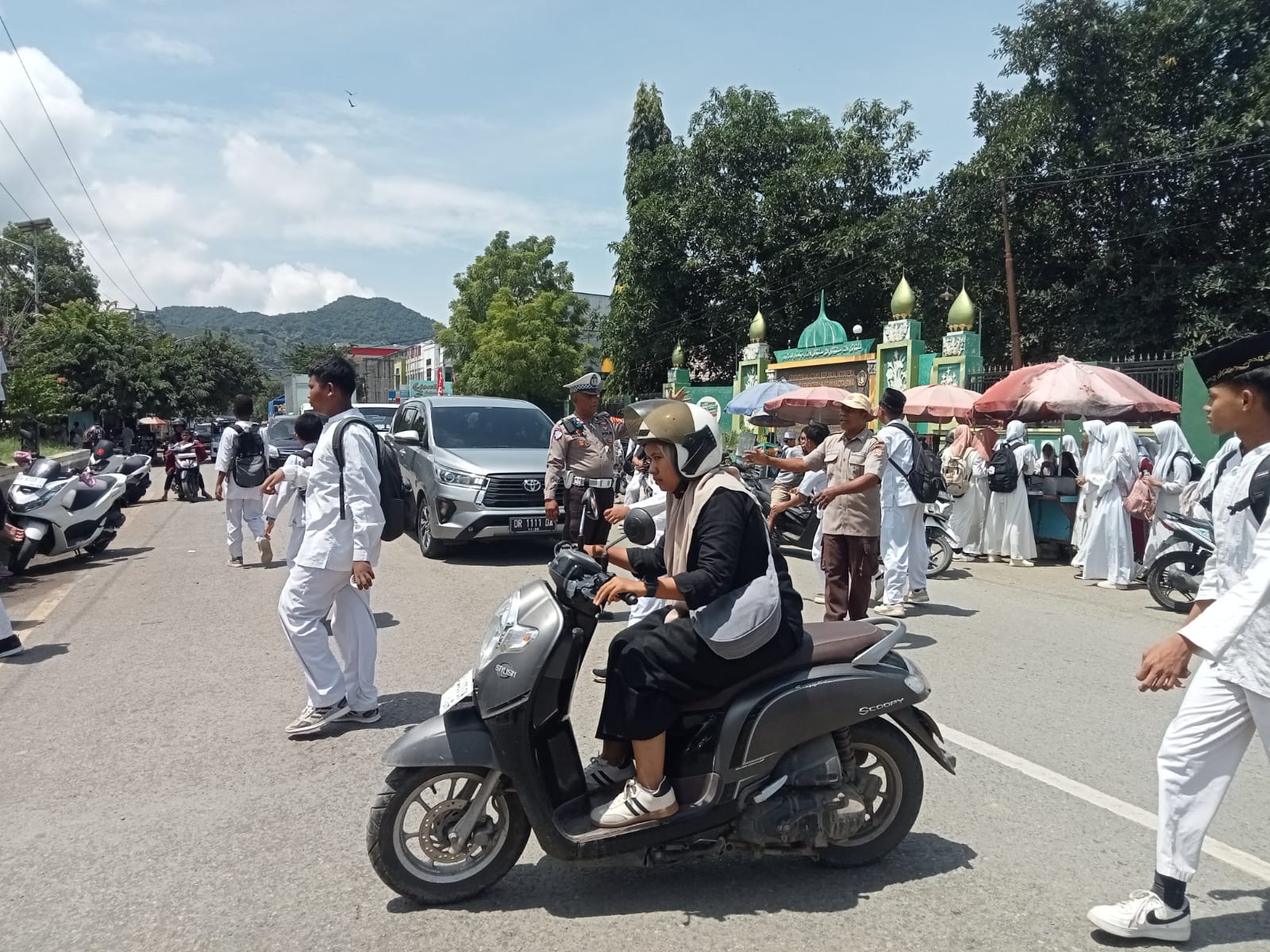 Selain itu, petugas juga memberikan imbauan keselamatan berkendara kepada para orang tua yang menjemput anak-anak mereka di MTSN 1 Kota Bima. Edukasi mengenai tertib berlalu lintas menjadi bagian penting dalam upaya menciptakan lingkungan yang lebih aman dan kondusif, terutama di sekitar kawasan sekolah.