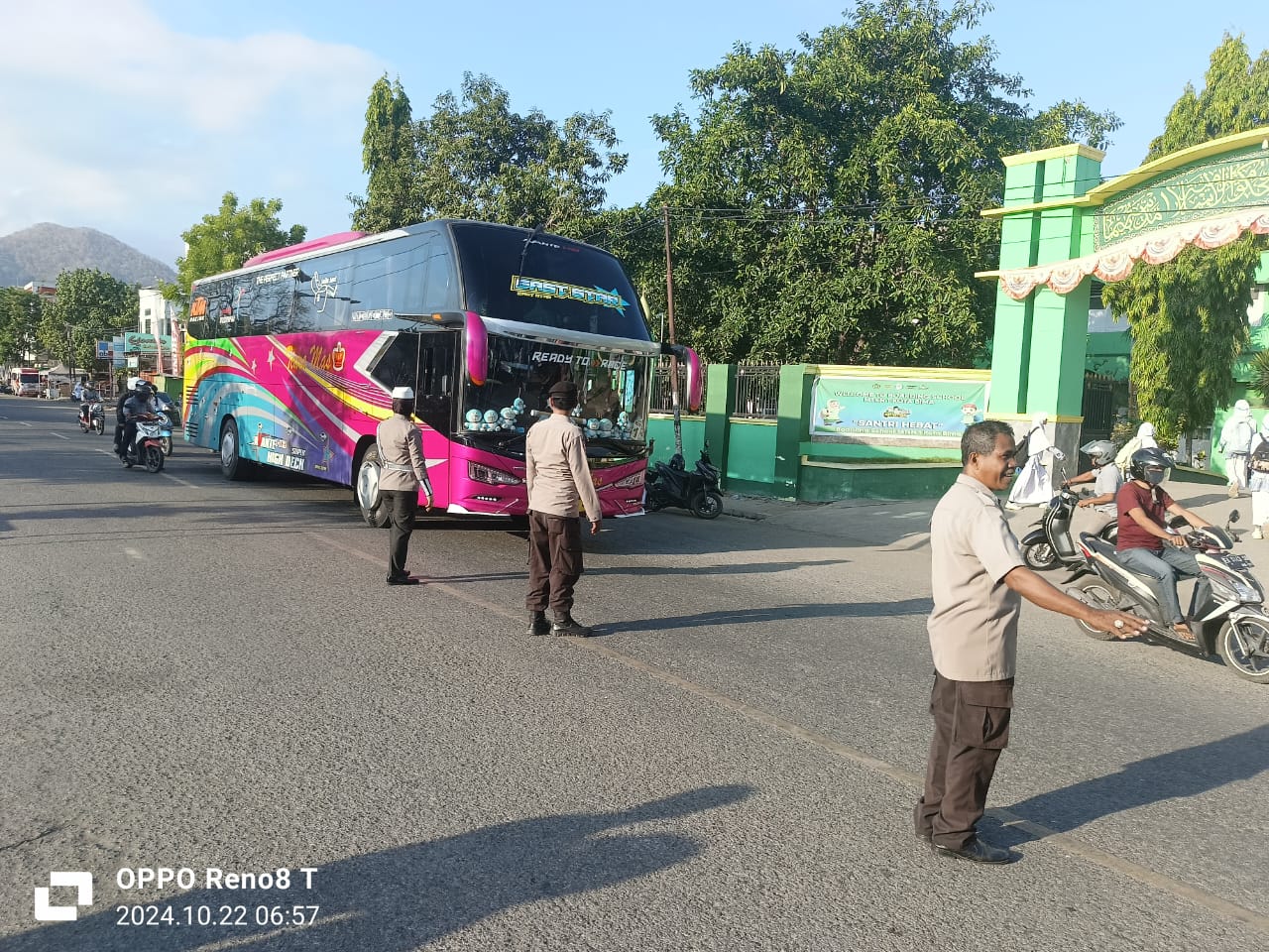 Kapolres Bima Kota AKBP Yudha Pranata, S.I.K., S.H., melalui P.s Kasubseksi PIDM Sie Humas, Aipda Nasrun, menjelaskan bahwa personel Polsek Rasanae Barat bekerja sama dengan Unit Lantas Polsek Rasanae Barat serta petugas keamanan dari MTSN 1 Kota Bima dalam pelaksanaan kegiatan ini. Mereka bertugas menertibkan para pengguna jalan, baik pengendara roda dua maupun roda empat, yang melanggar jalur atau melawan arus.