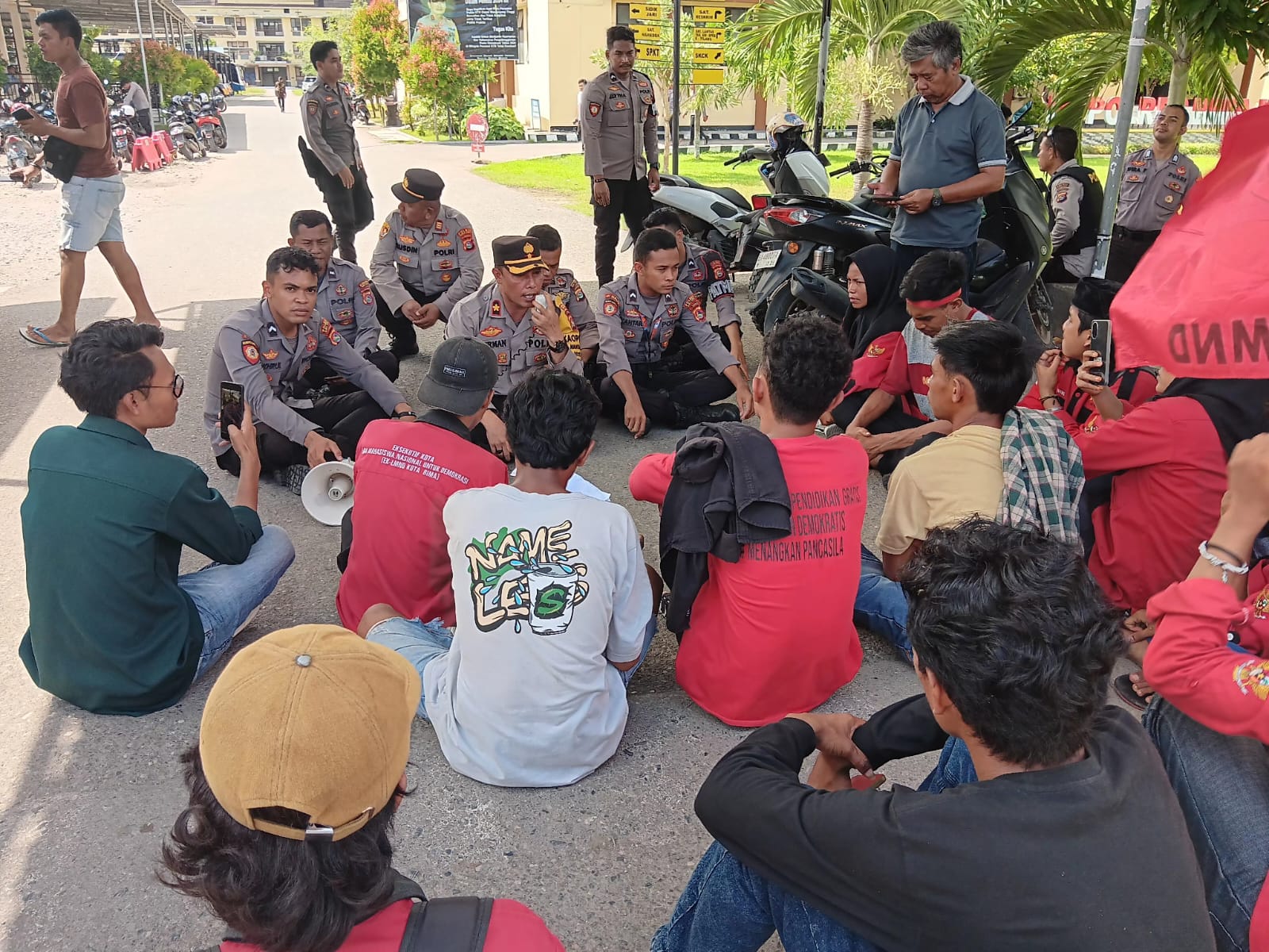 Kota Bima, NTB (25/4) – Dalam menanggapi aksi demonstrasi yang dilakukan secara damai tanpa mengganggu ketertiban umum, Polres Bima Kota menunjukkan sikap yang humanis dan penuh kekeluargaan. Hal ini terlihat saat mereka menerima massa aksi dari Liga Mahasiswa Nasional untuk Demokrasi (LMND) Bima pada Rabu kemarin.