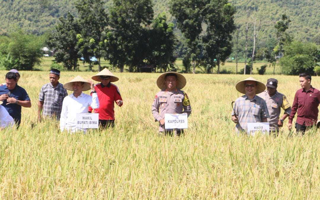 Sementara itu Kapolres Bima AKBP Eko Sutomo S.I.K., M.I.K., Bersama Forkompinda Kabupaten Bima Melaksanakan panen raya padi di So Ta,a Desa Teke Kecamatan Palibelo Kabupaten Bima.