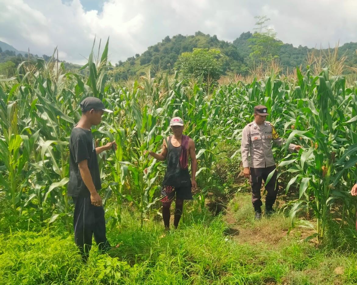 Bima, NTB (25/2) – Mendukung program ketahanan pangan nasional, Bhabinkamtibmas Polsek Woha Polres Bima Polda NTB Bripka I Wayan Parwata melaksanakan kegiatan peninjauan serta monitoring pertumbuhan jagung.