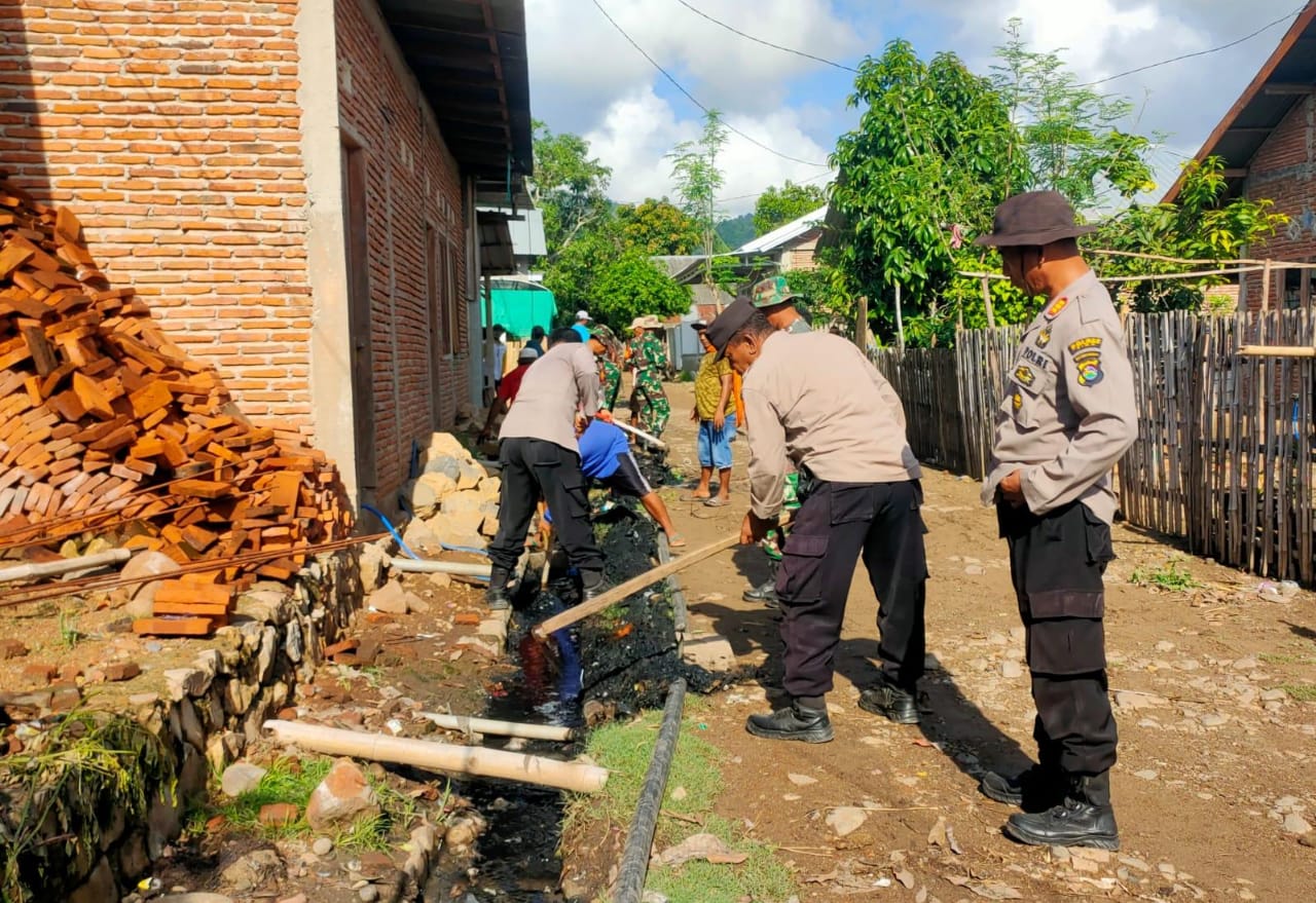 Bima, NTB (7/12) – Personil polsek Monta bersama personil Koramil 1608-7 Monta dan masyarakat Desa Sondo Kecamatan Monta Kabupaten Bima menggelar karya bakti gotong Royong Rabu (06/12/23) Sekira Pukul 08.00. WITA.