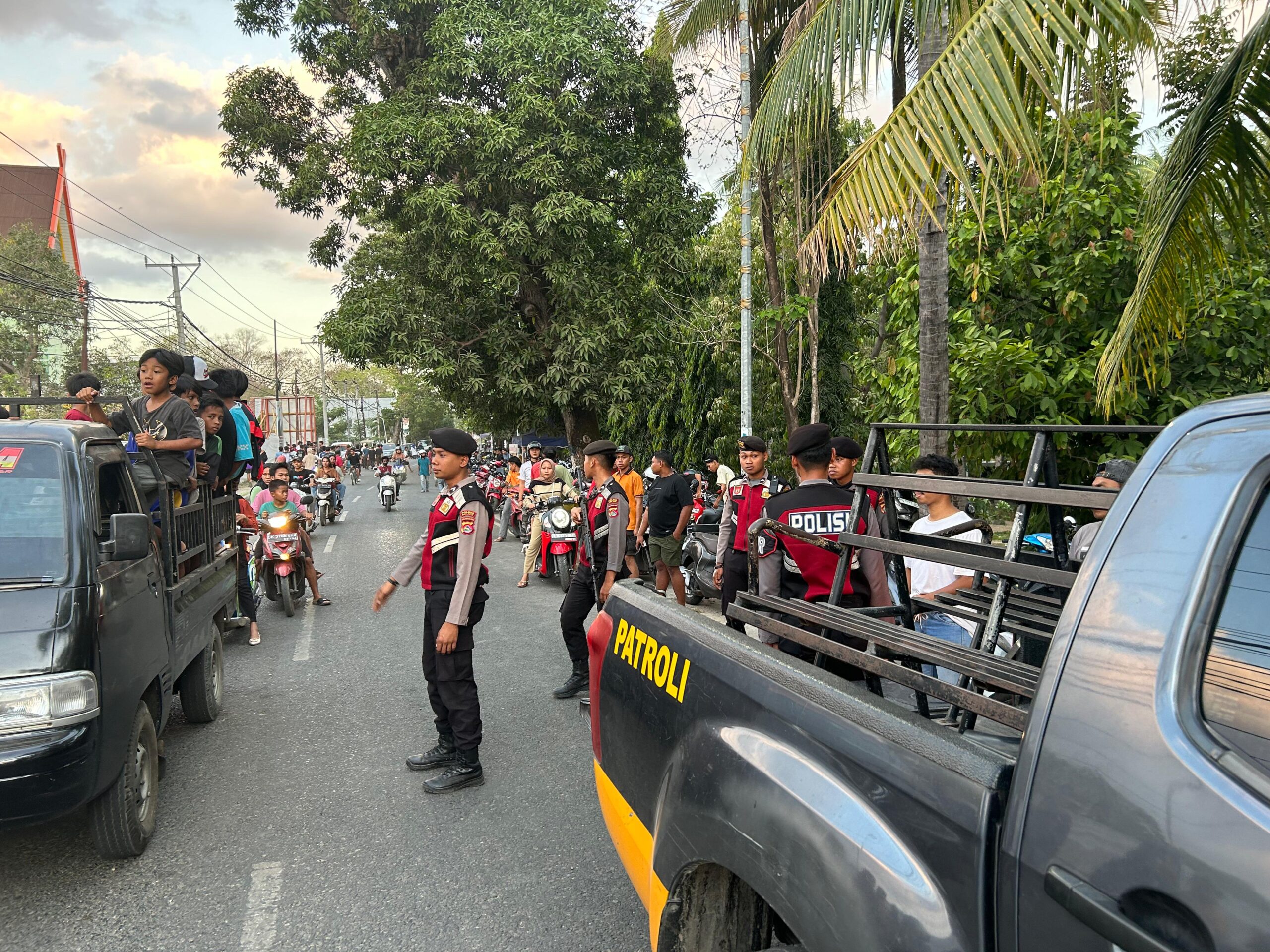 Kota Bima, NTB (08/9/2024) Personel Satuan Samapta Polres Bima Kota bergerak cepat mengurai kemacetan yang terjadi di Jalan Soekarno Hatta, Taman Ria, Kota Bima, pada Minggu (8/9/2024) sekitar pukul 09.30 WITA. Langkah ini diambil setelah petugas yang tengah melakukan patroli rutin mendapati adanya kemacetan akibat parkir kendaraan yang tidak teratur di tengah jalan.